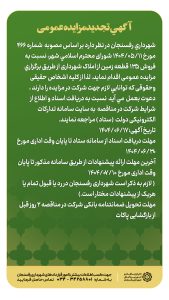 آگهی تجدید مناقصه عمومی شهرداري رفسنجان نسبت به انتقال بتن بادوعدد میکسر بتن جهت عملیاتهای عمرانی بوستان مسافر واقع دربلوار فاتحان اروندو غیره