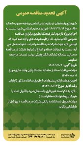 مهلت دریافت اسناد از سامانه ستاد تا پایان وقت اداری مورخ ۰۱/۰۸/۱۴۰۴