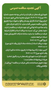 مهلت دریافت اسناد از سامانه ستاد تا پایان وقت اداری مورخ ۰۱/۰۸/۱۴۰۴