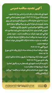 آگهي تجدید مناقصه عمومی شهرداري رفسنجان نسبت به اجرای عملیات قالب بندی وآرماتوربندی،بتن ریزی وعمل آوری وسایر موارداجرایی پل زیرگذرواقع در بلوارخلیج فارس