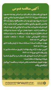 خانه » آگهي مناقصه عمومی شهرداري رفسنجان، نسبت به پروژه بهسازی بوستان معلم واقع در بلوار آیت الله هاشمی