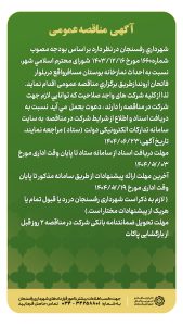 آگهي مناقصه عمومی شهرداري رفسنجان نسبت به احداث نمازخانه بوستان مسافرواقع دربلوار فاتحان اروند