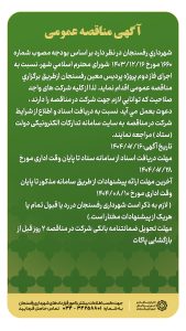 آگهي مناقصه عمومی شهرداري رفسنجان نسبت به اجرای فاز دوم پروژه پردیس معین رفسنجان
