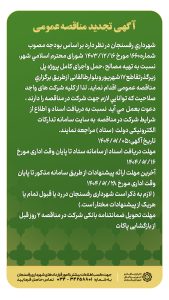 آگهی تجدید مناقصه شهرداری رفسنجان نسب به تهیه حمل واجرای کامل پروژه پل زیرگذرتقاطع۱۷شهریور و بلوارطالقانی