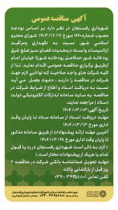 آگهی مناقصه عمومی شهرداري رفسنجان نسبت به نگهداری ومراقبت ازتاسیسات وابسته درمحدوده فضای سبز ضلع شرق رودخانه شور